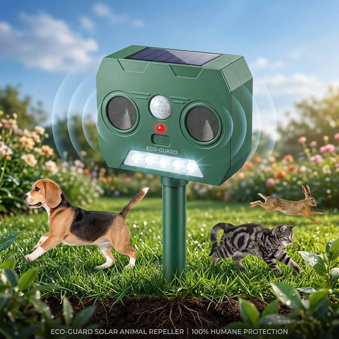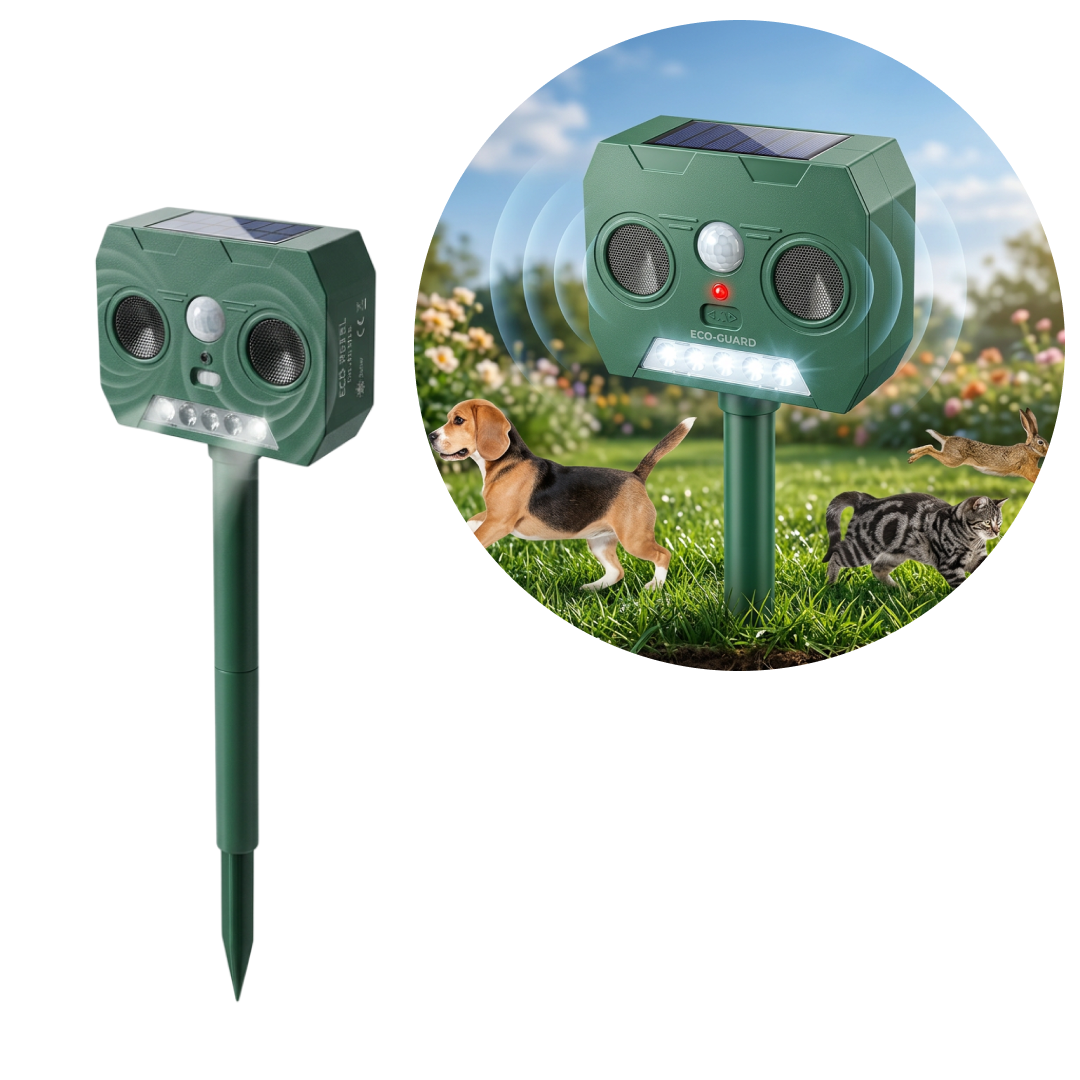 Emite ultrasunete imperceptibile pentru oameni, dar deranjante pentru rozatoare, caini, pisici, cerbi si alte animale nedorite.