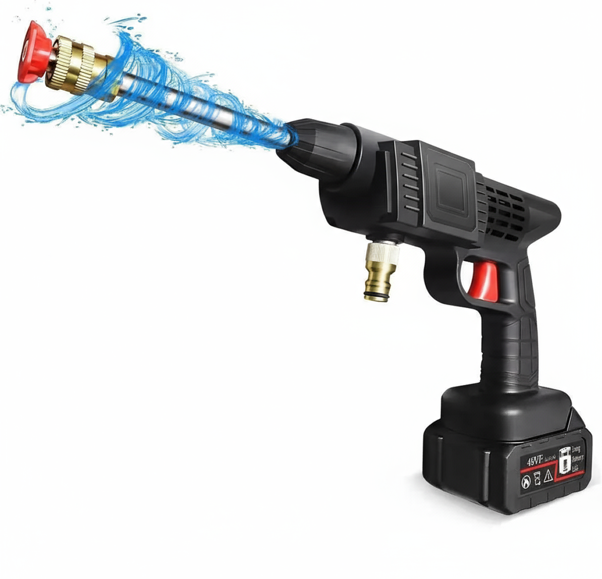 Accesorii incluse: furtun 5 m, lance pulverizare, duză cu cuplare rapidă, filtru de apă, adaptor PET, recipient detergent 200 ml, încărcător