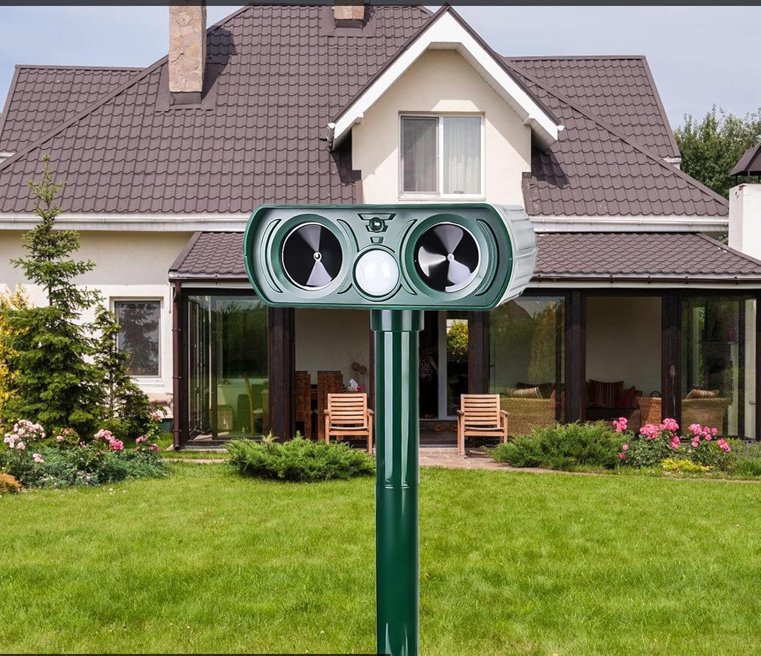 Emite ultrasunete care deranjeaza animalele fara a le face rau, determinandu-le sa paraseasca zona.