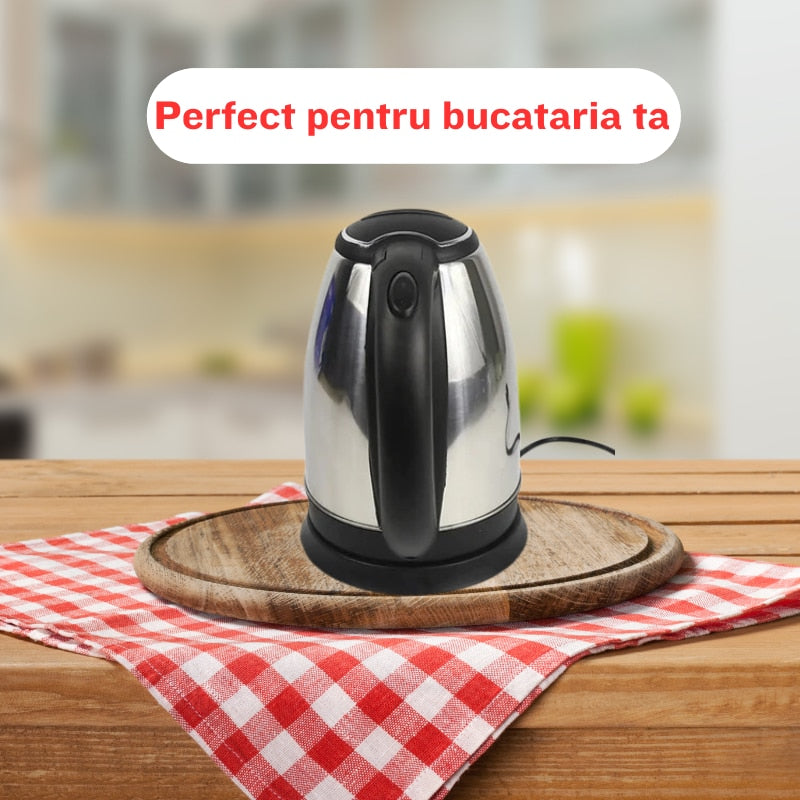 Cana Fierbator Inox | 2L, 1500W, Oprire Automata, Protectie Supraincalzire, Rotatie 360°, Design Inox/Negru