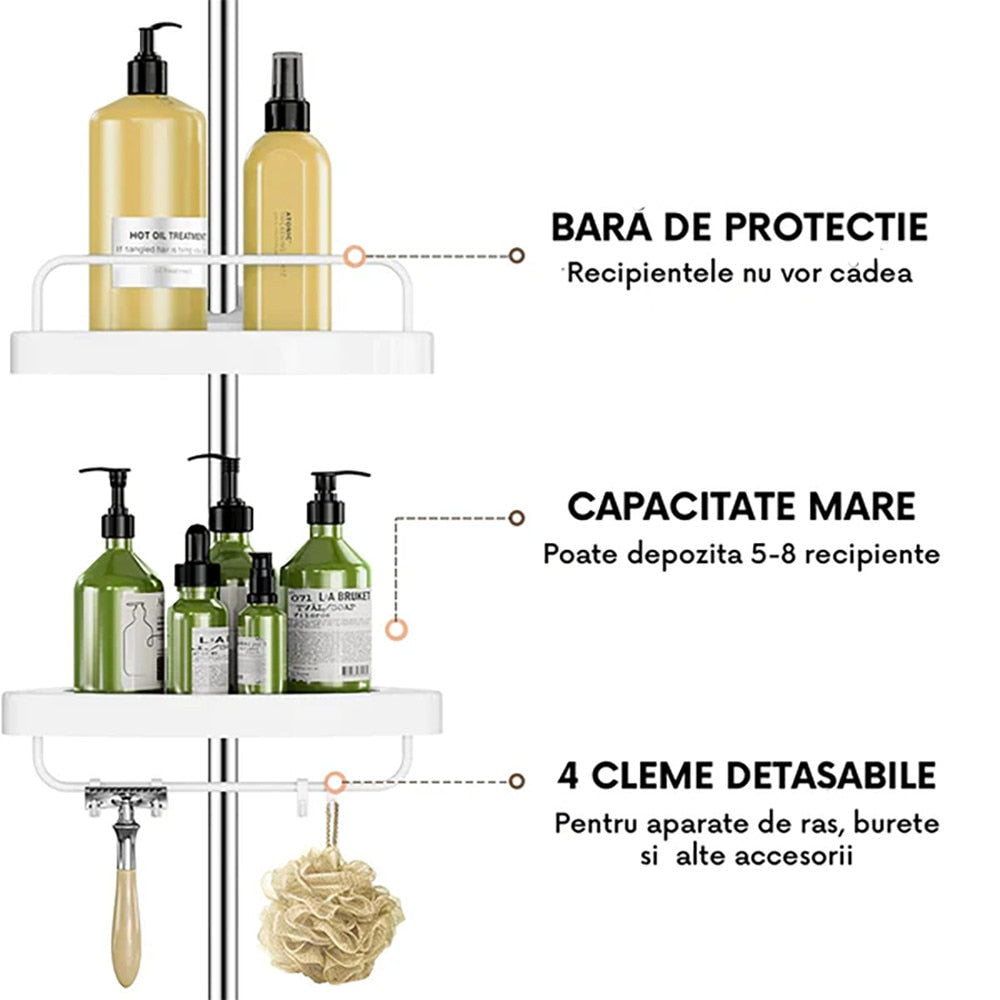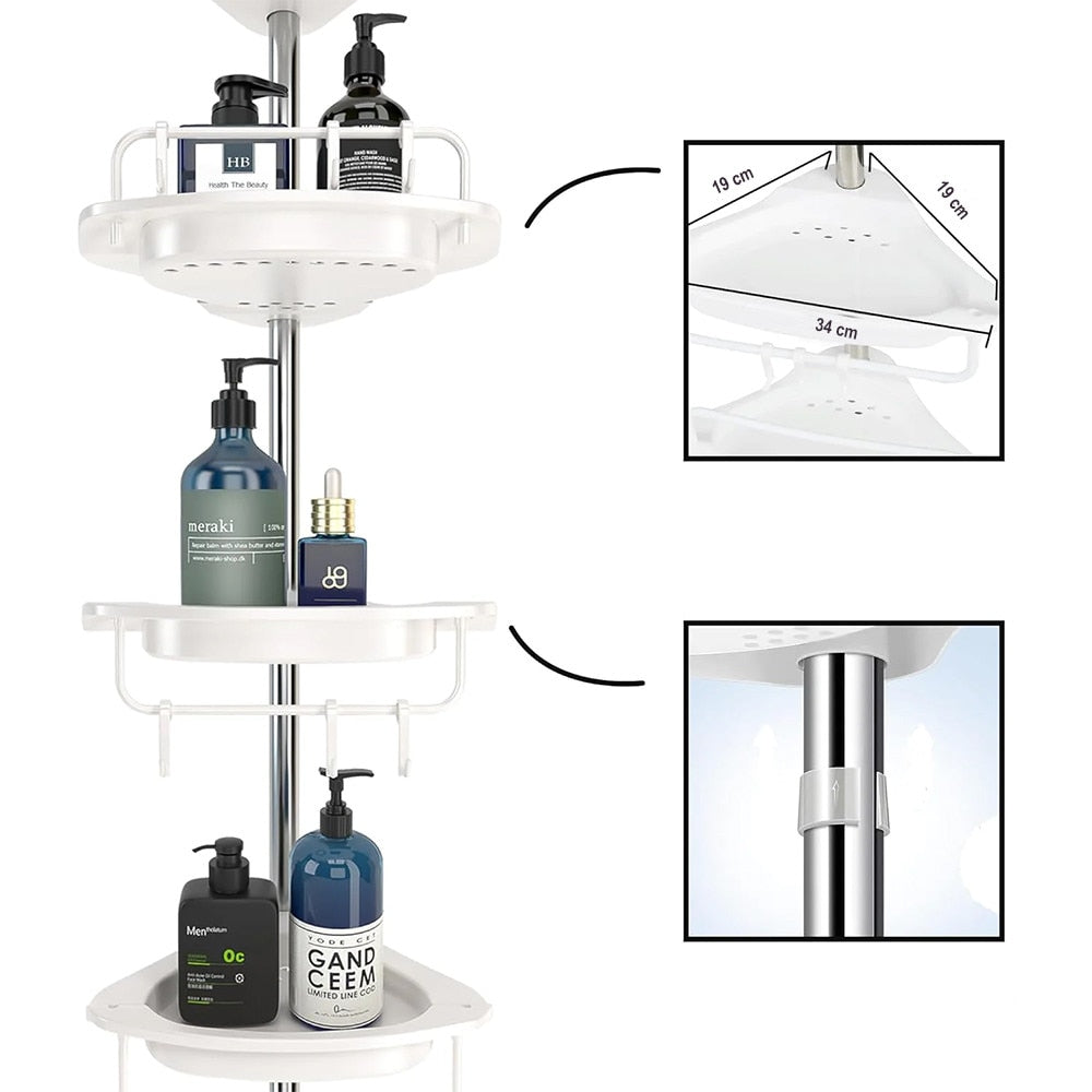 Etajeră Colț Pentru Baie și Duș | 4 Rafturi Reglabile | Înălțime 100–260 cm | Montare Pe Colț