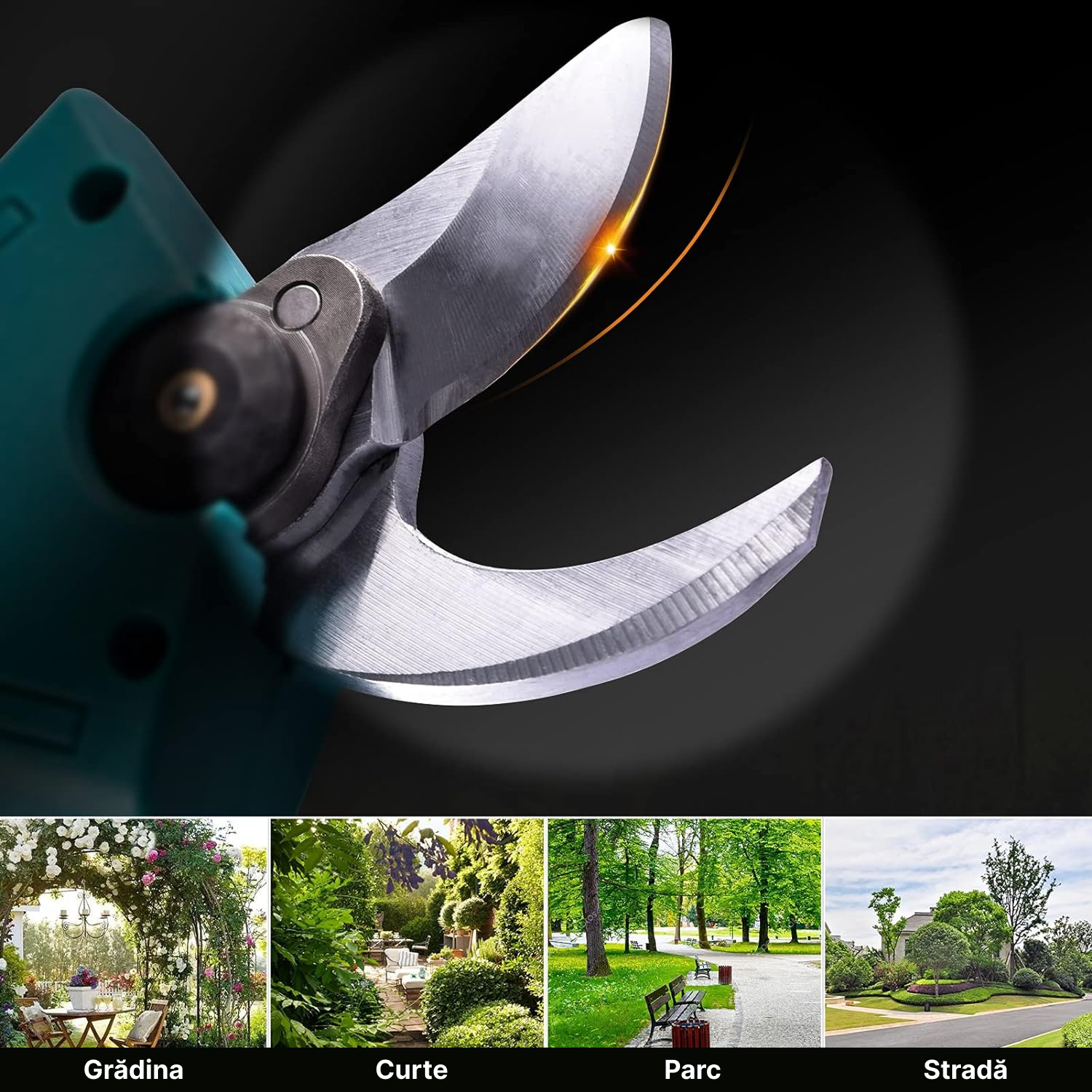 - Lame profesionale: fabricate din otel calit, asigura o taiere uniforma si curata, fara deteriorarea ramurilor.