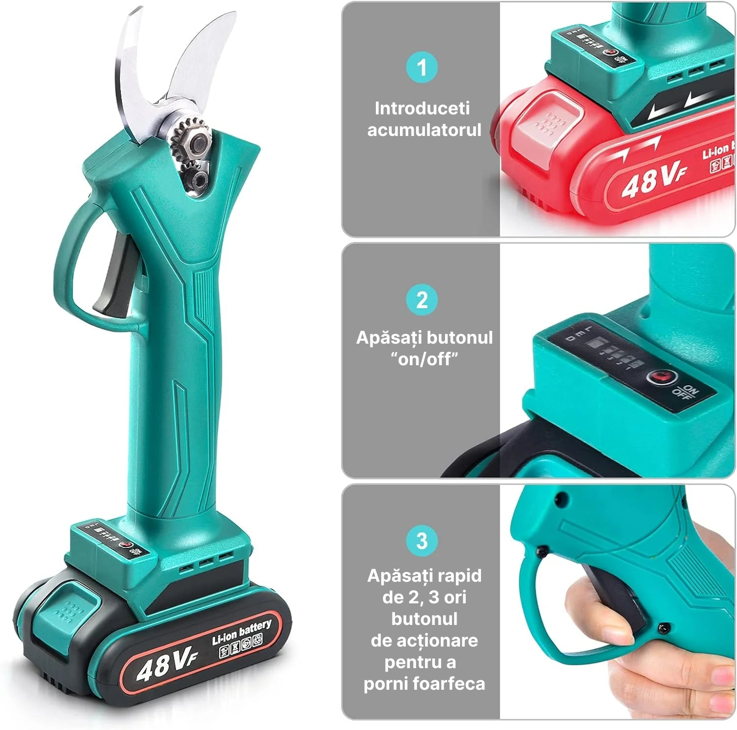 Foarfeca Electrica Pentru Vita De Vie Si Crengi | 2 Acumulatori 48V 2Ah | Taiere 30mm
