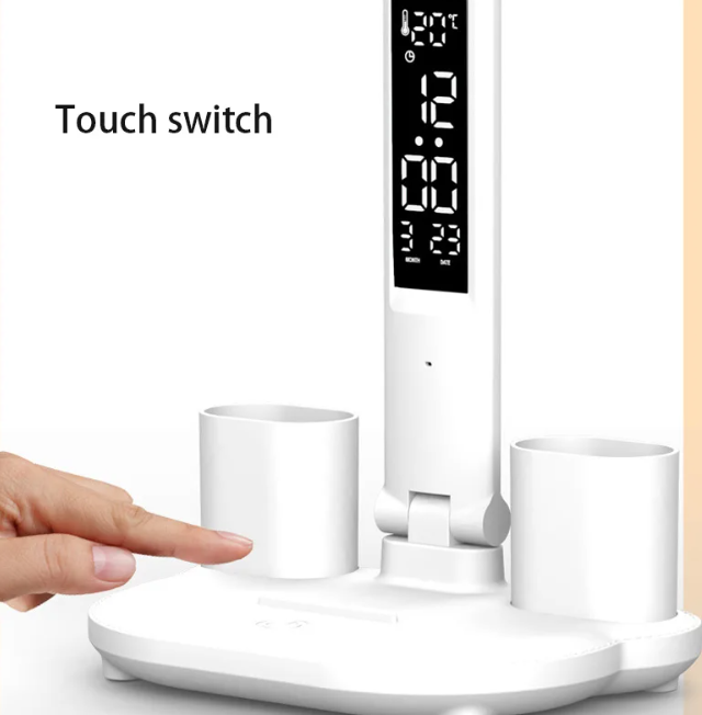 Lampa de birou LED pliabila | Alimentare USB | Suport de pixuri, afisaj temperatura, data si ora | Diferite Moduri si Intensitati
