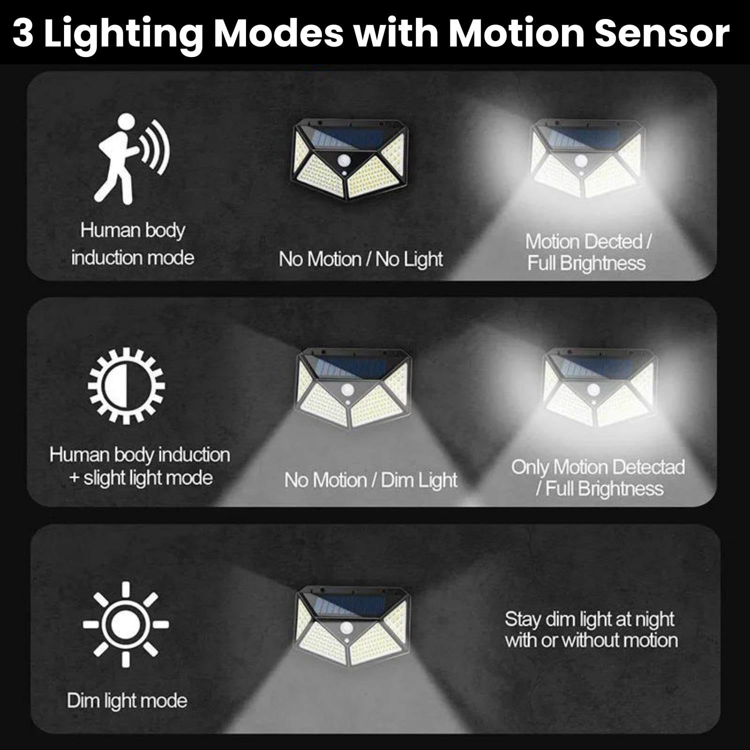 Set 2 Lampi cu Incarcare Solara WERSTIL, cu Senzori Miscare si Lumina, 3 Trepte de Iluminare, 100 Leduri