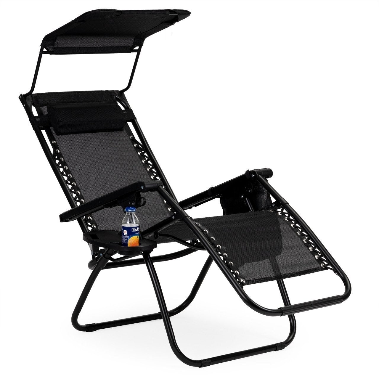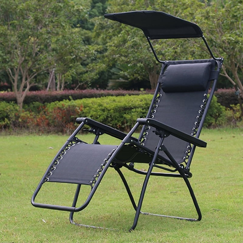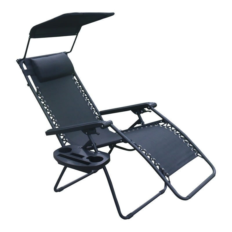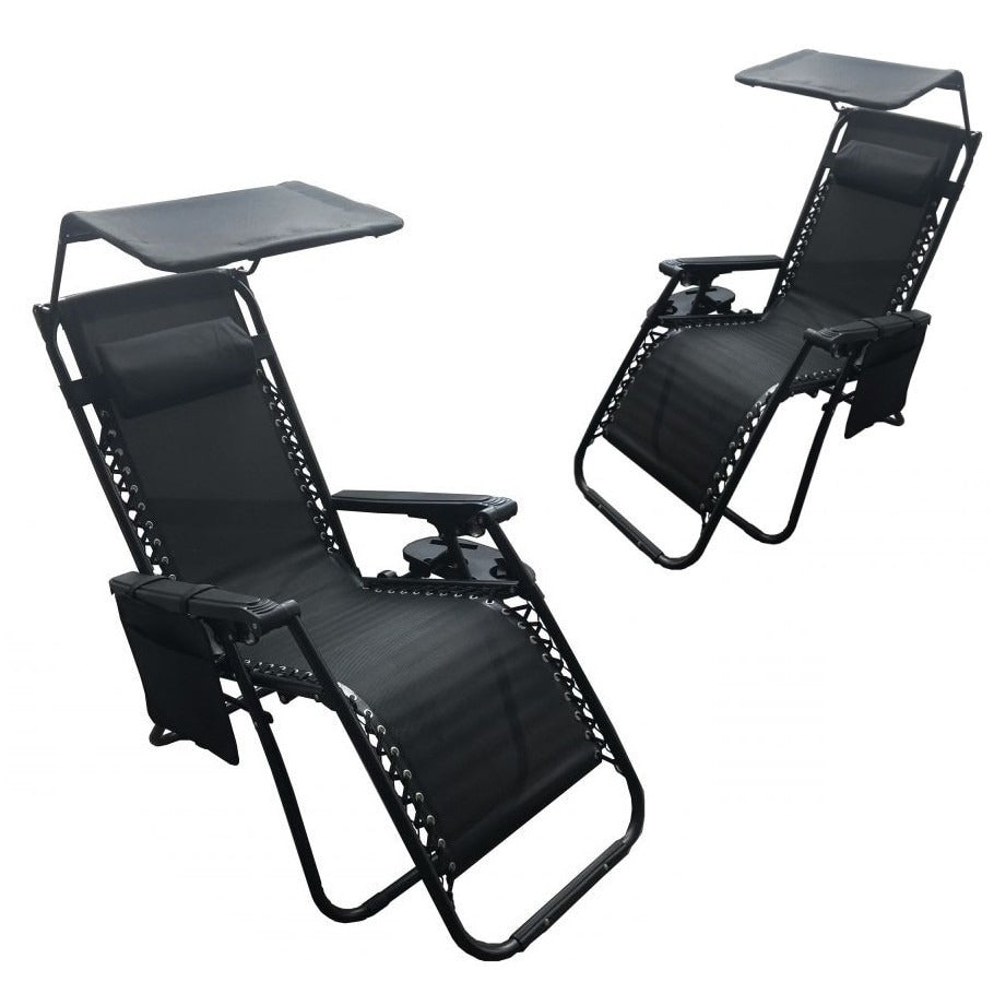 SET 2X Sezlong Pliabil si Ajustabil cu Suport Lateral, Acoperis, Tetiera si Cotiera