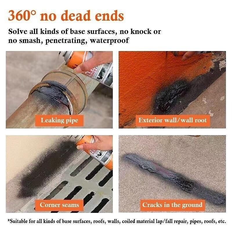 Spray-ul de etansare adera la multe suprafete precum sticla, metalul, plasticul, fibra, PVC, lemnul, emailul si multe altele.