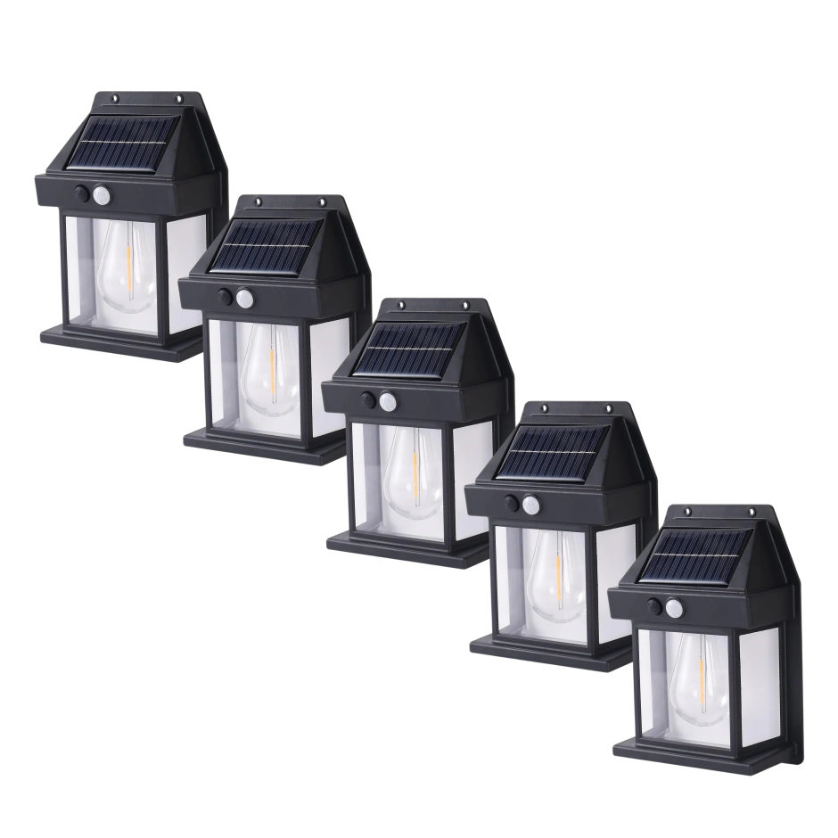 Set 5 x Lampa Solara de Perete | Forma Felinar | 18W | Senzor de Miscare | Lumina Calda 3000K