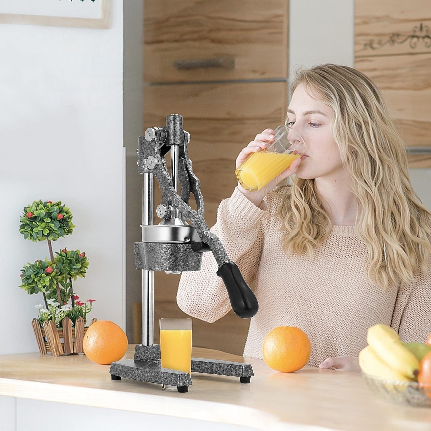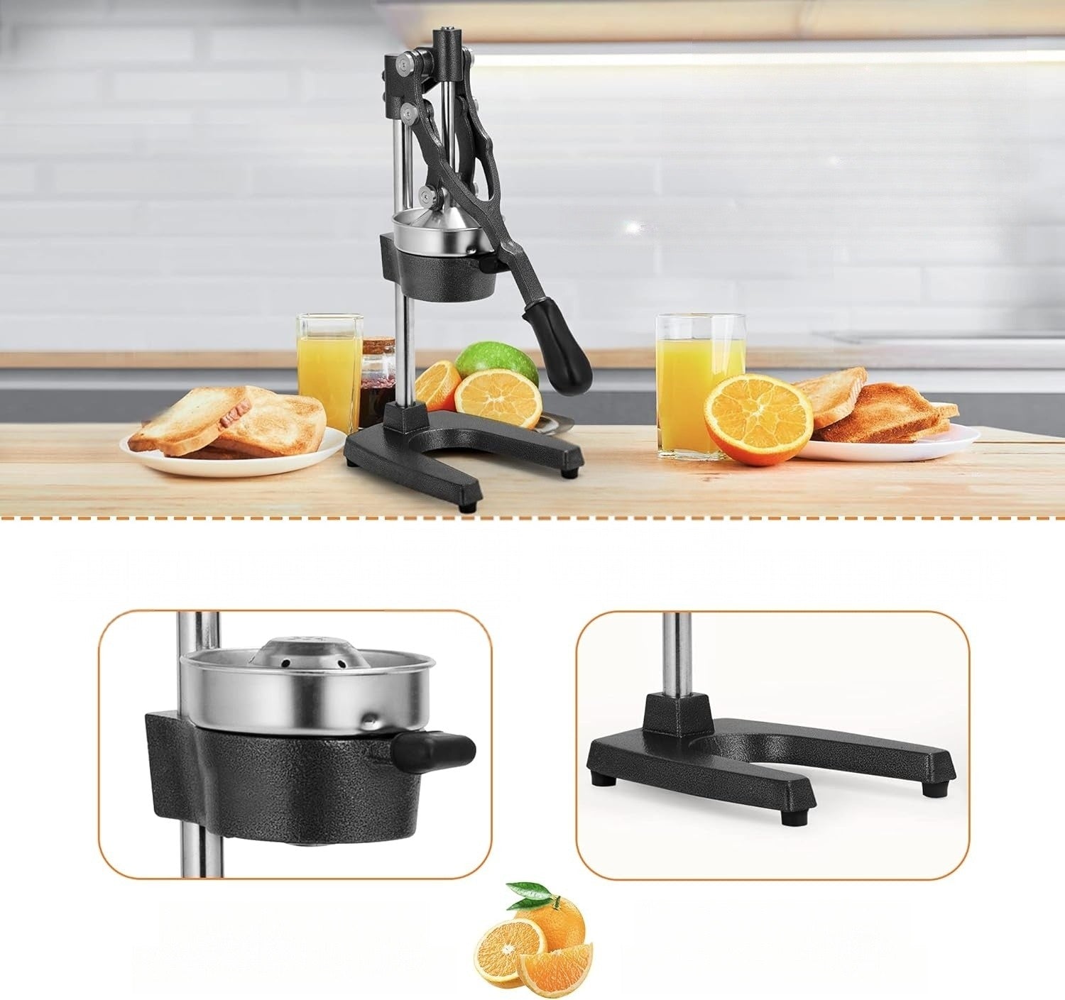 - Construcție durabilă și sigură: combinație de fontă grea și oțel inoxidabil alimentar, asigură o presare eficientă și o durată lungă de viață.