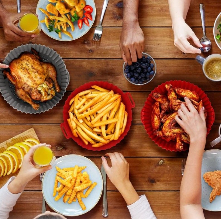 Farfuria din silicon pentru friteuza cu aer cald este alternativa moderna, durabila si ecologica la hartia de copt traditionala. Fabricata din silicon alimentar de inalta calitate, rezistent la temperaturi extreme, permite gatirea sanatoasa si curata in friteuza, cuptor sau microunde. Datorita suprafetei antiaderente si texturii speciale, asigura o coacere uniforma si usor de curatat, facand gatitul mai simplu si eficient.