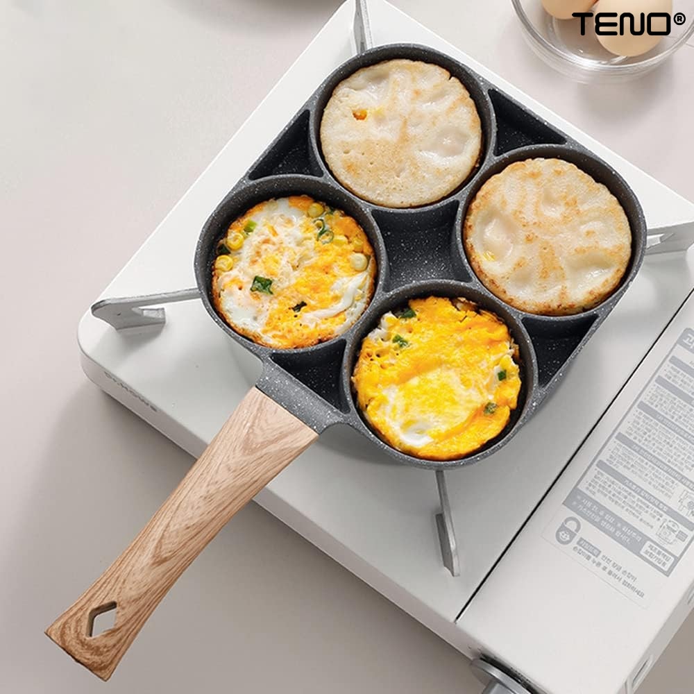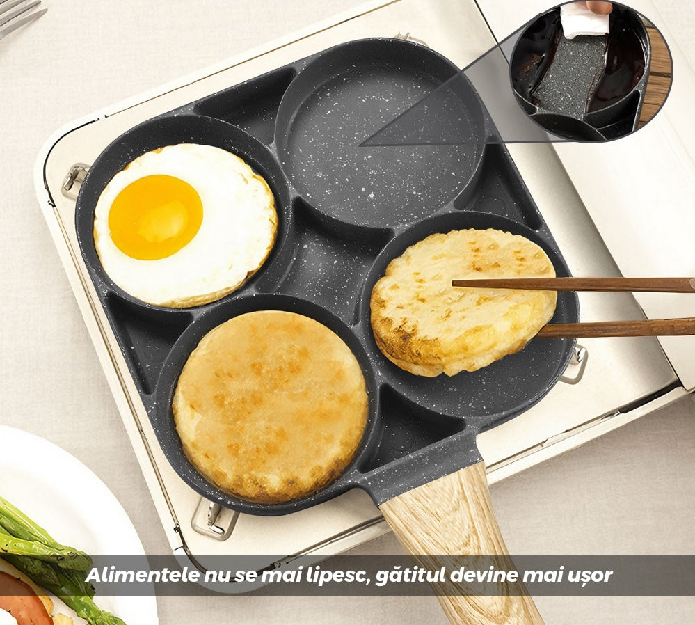 Tigaie Antiaderenta Cu 4 Compartimente | Maner Lemn | Compatibila Cu Inductie Si Aragaz