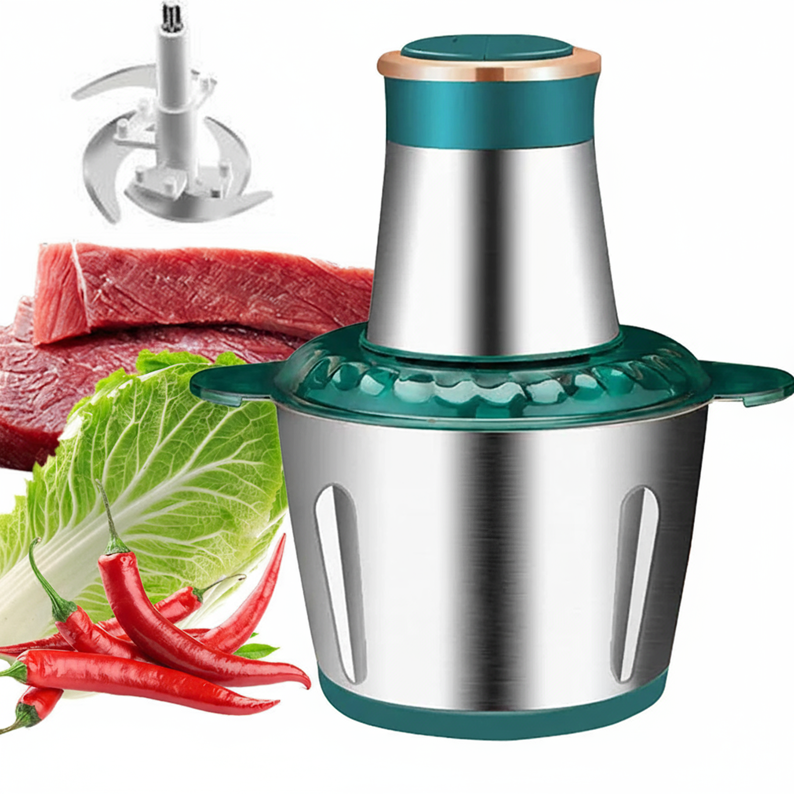 Tocatorul electric multifunctional de 850W transforma gatitul intr-o experienta rapida si eficienta. Echipat cu 4 lame din otel inoxidabil in forma de „S” si un bol de 2L din inox, ofera performanta profesionala chiar in propria bucatarie. Ideal pentru carne, legume, fructe, nuci sau condimente, asigura rezultate uniforme in doar cateva secunde, cu un nivel redus de zgomot.